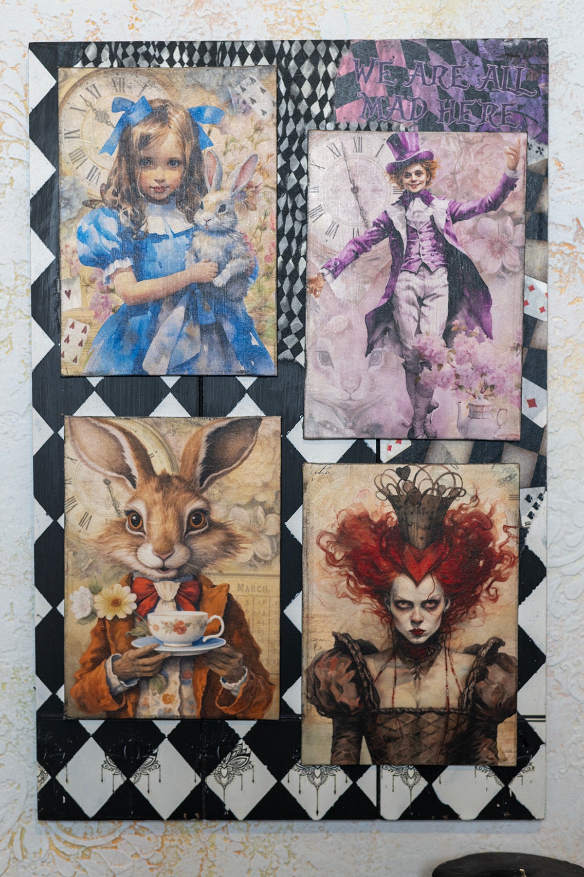 Alice in Wonderland Mixed Media Wall Hanging. Measures 12" x 18"