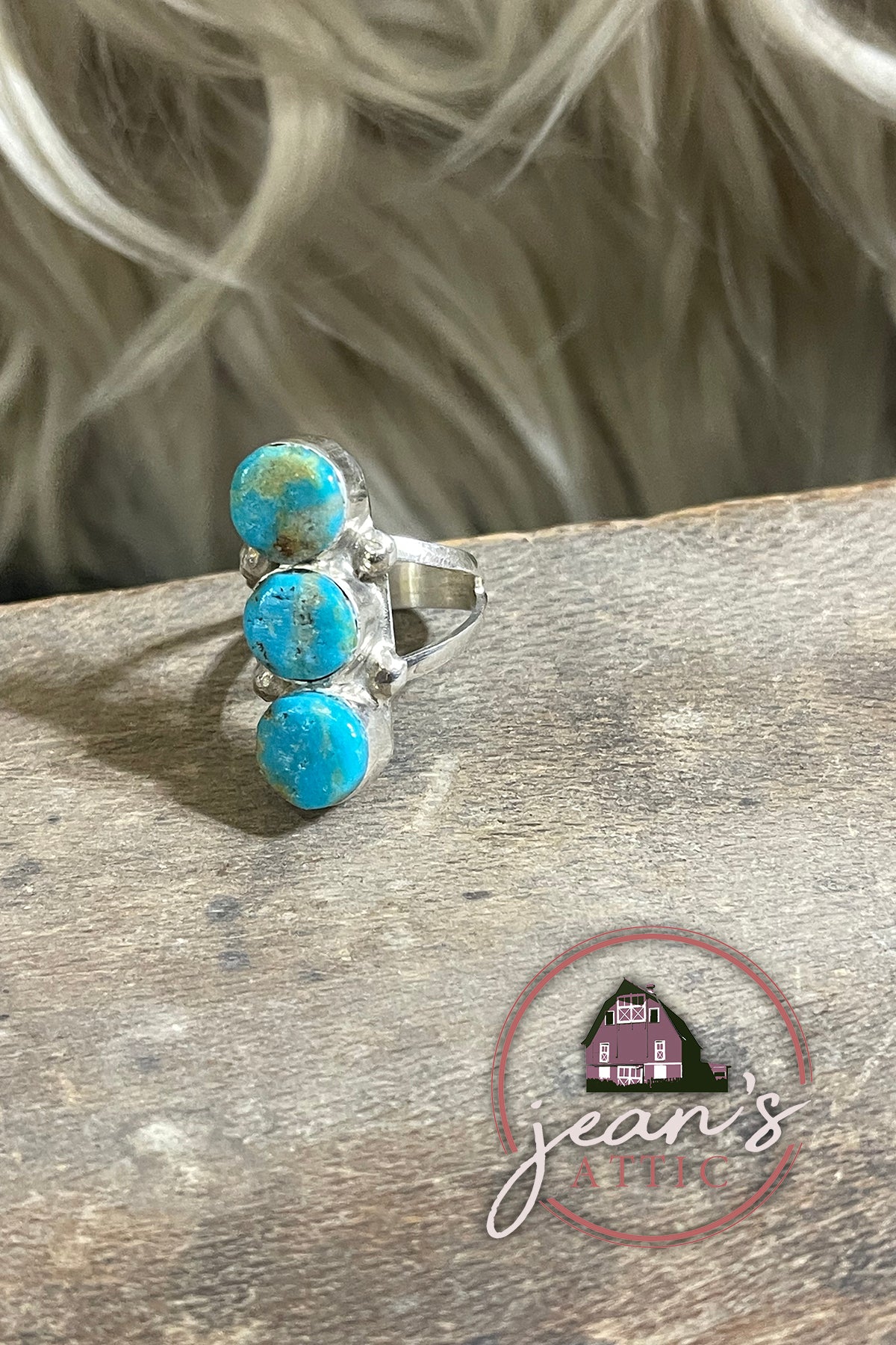 Navajo Sterling Silver 3 Stone Turquoise Ring