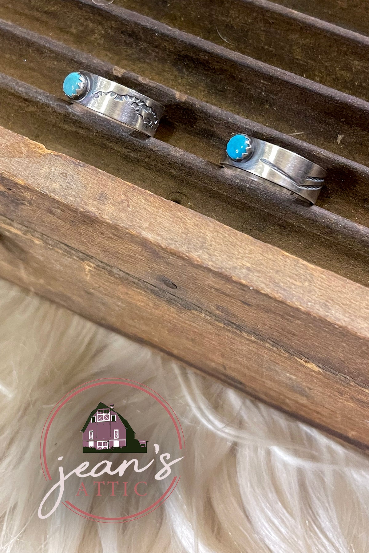 Navajo Sterling Silver Stamped Band with Turquoise. Stamped Sterling