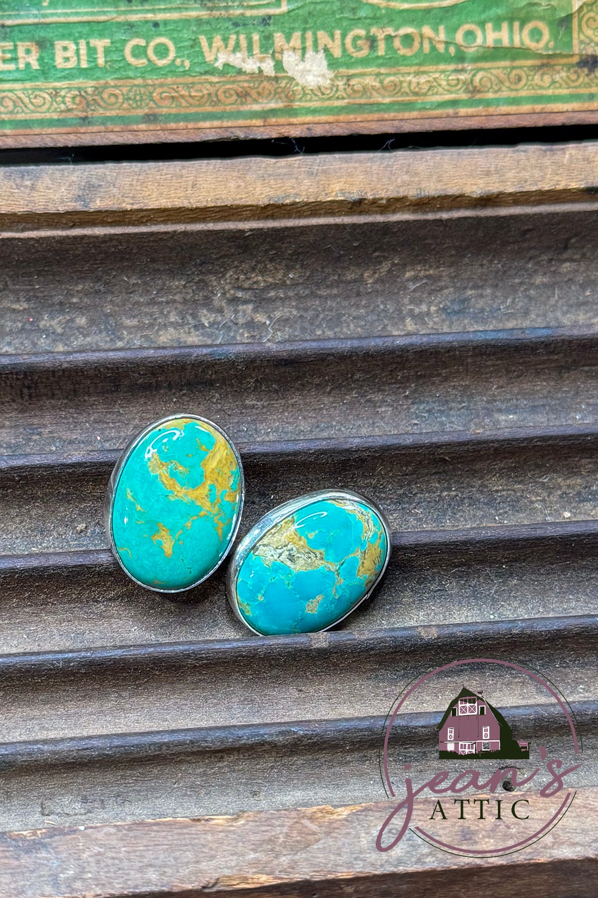 Indian Mountain Turquoise Earrings by Navajo Artist Brian Sandoval. Stamped