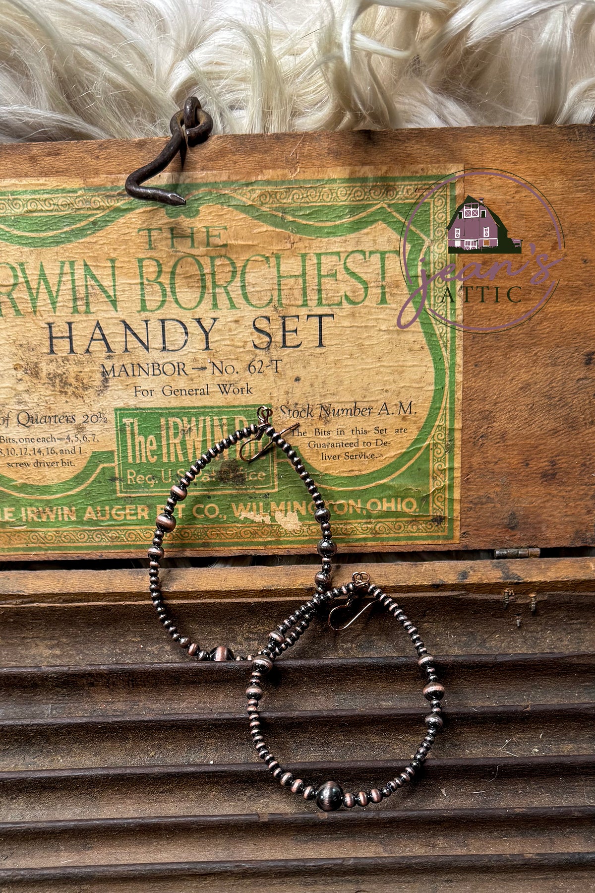 Teardrop Faux Navajo Pearl Hoop Earring. Copper. 3"